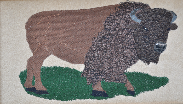 - Embroidered buffalo panel