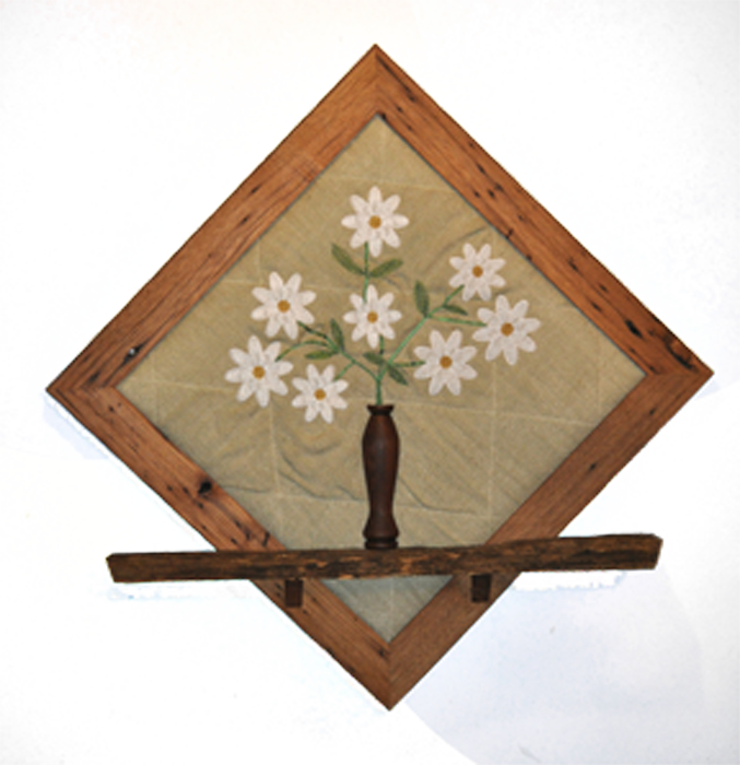 - Daisies embroidered on burlap